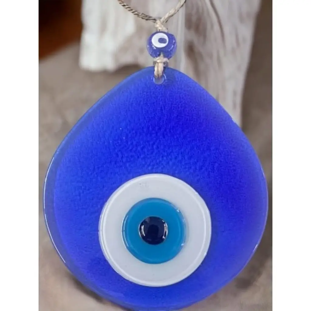 Şeffaf mavi renk nazar boncuklu duvar süsümüz tamamen el işçiliği ile üretilmiştir. Tasarım harikası el yapımı nazar boncuklu duvar süsümüz 13 x 12 santimetre ölçülerindedir. Ürünümüz ip dahil 21 santimetre boyundadır.