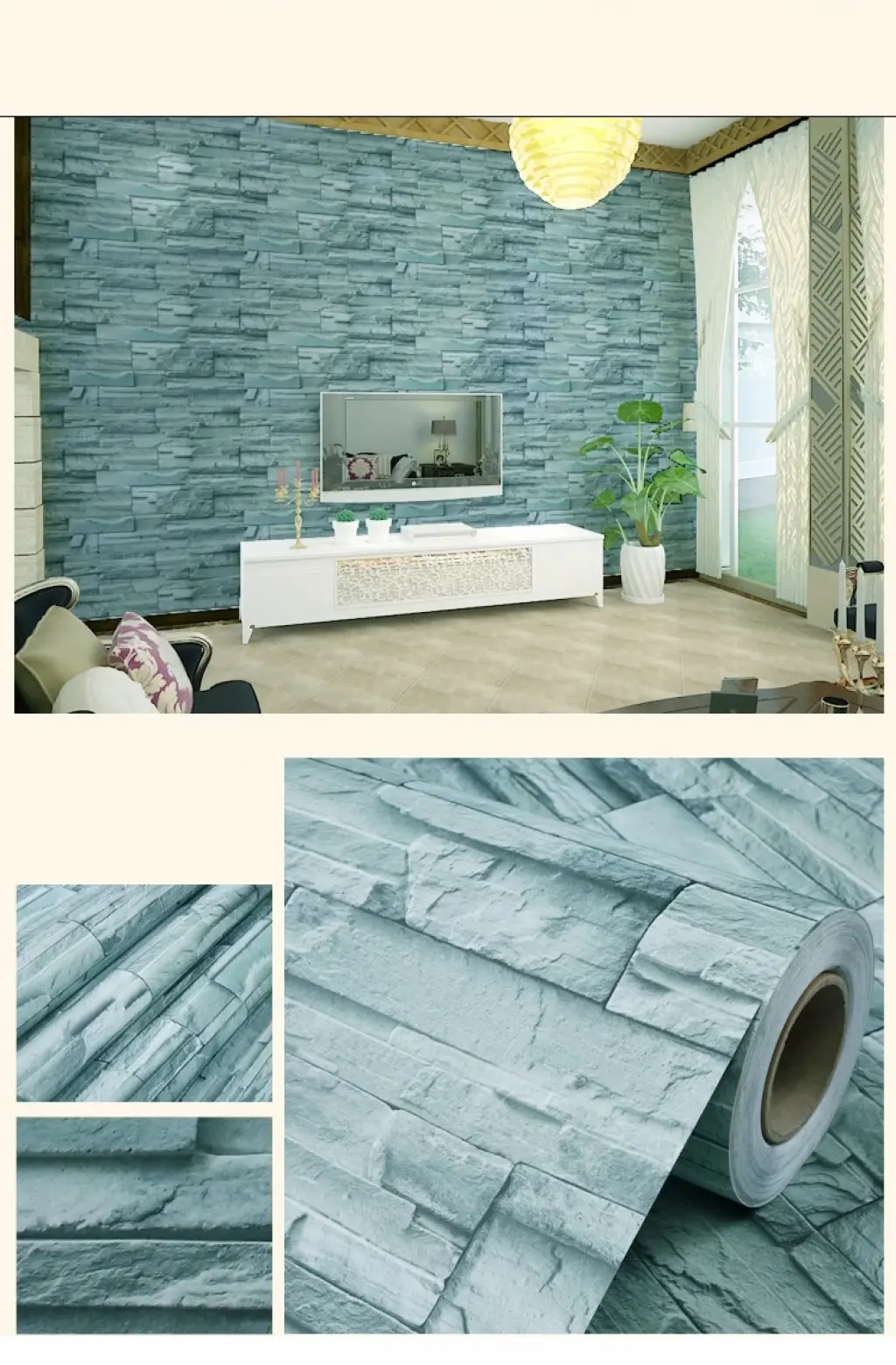 1 Adet Mavi Taş Tuğla Desenli Kendinden Yapışkanlı 3d Duvar Raf Kapı Kaplama Kağıdı 5 Metre 60 Cm