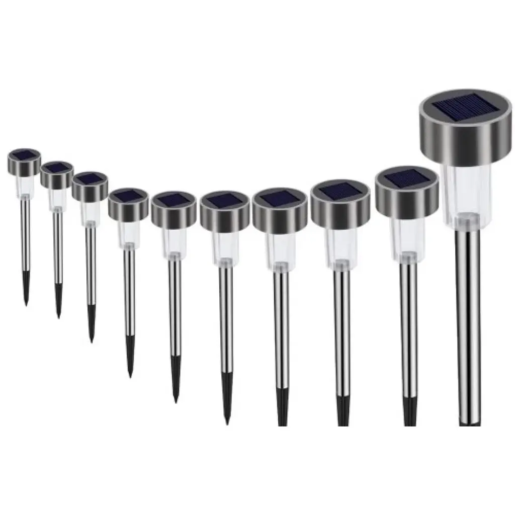 Metal Gövdeli Solar Bahçe Lambası – 10’lu SetÜrün Açıklaması:Bahçenizi şık ve çevre dostu bir şekilde aydınlatın!Metal gövdeli solar bahçe lambaları, güneş enerjisiyle çalışır ve kablosuz kullanım sunar.10’lu set halinde sunulan bu lambalar, yürüyüş yolları, balkon, teras ve bahçeler için ideal bir dekoratif aydınlatma çözümüdür.Teknik Özellikler:Malzeme: Metal gövdeSet Adedi: 10’luIşık Rengi: Gün ışığıKazık Boyu: 30 cm (plastik)Solar Kafa Çapı: 4.5 cmEnerji Kaynağı: Güneş enerjisiPaket İçeriği:10 adet Metal Gövdeli Solar Bahçe Lambası