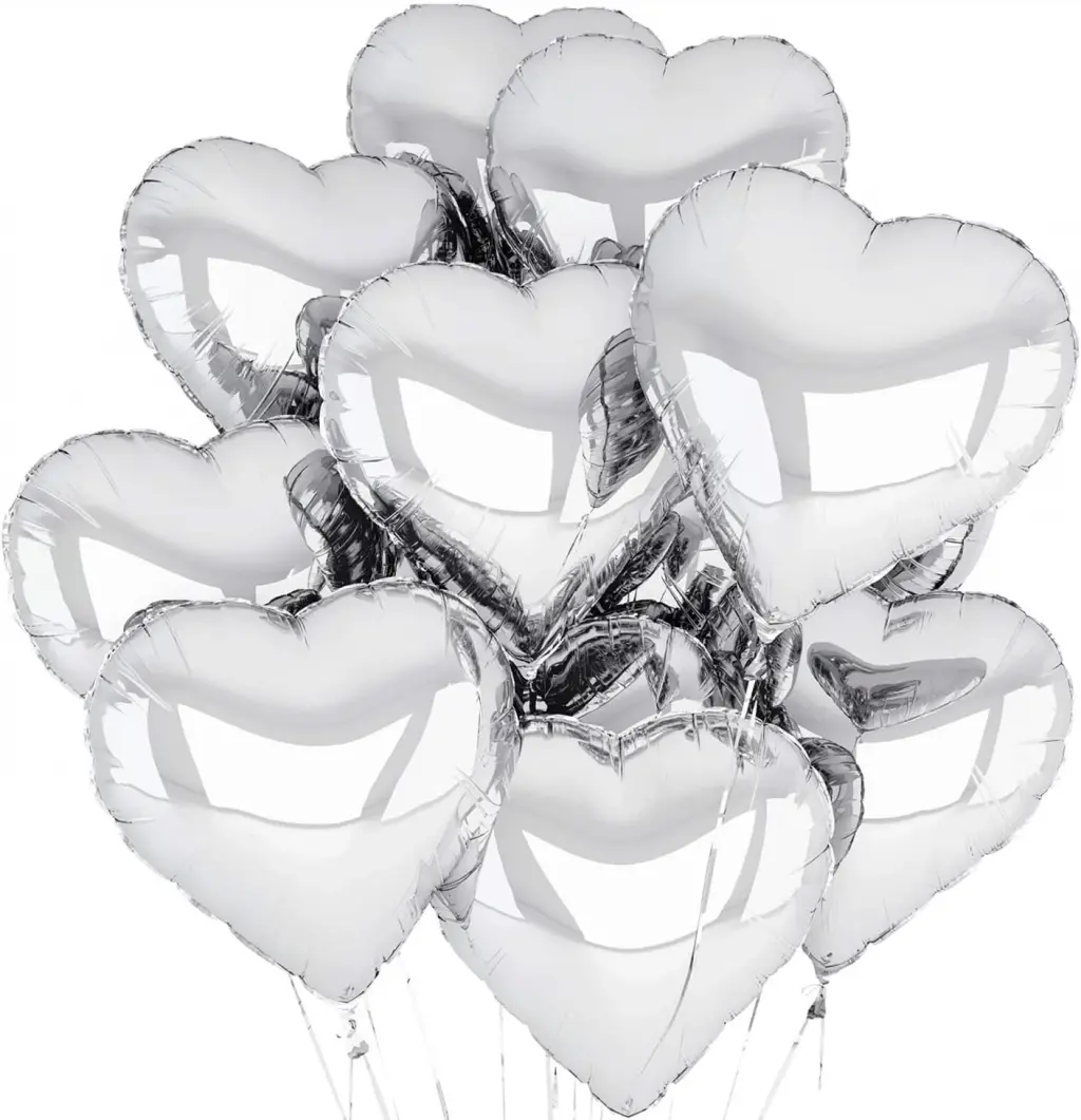 Metalize Parlak Gümüş Şekilli Kalp Uçan Balon Folyo 45 cm 10 Adet