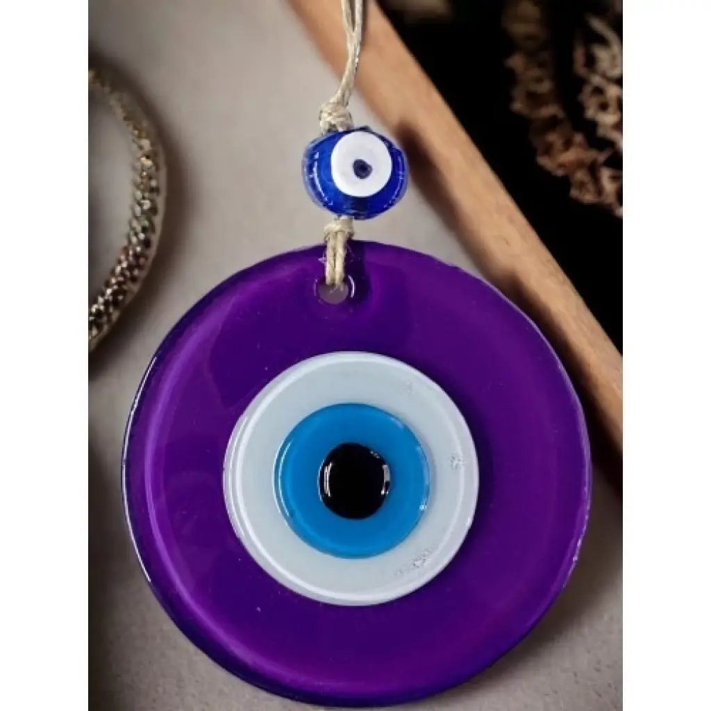 Mini boy mor renk nazar boncuklu duvar süsümüz tamamen el işçiliği ile üretilmiştir. Tasarım harikası el yapımı nazar boncuklu duvar süsümüz 10 x 10 santimetre ölçülerindedir. Ürünümüz ip dahil 23 santimetre boyundadır.