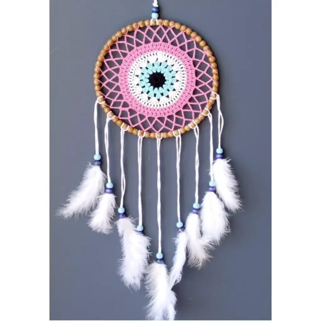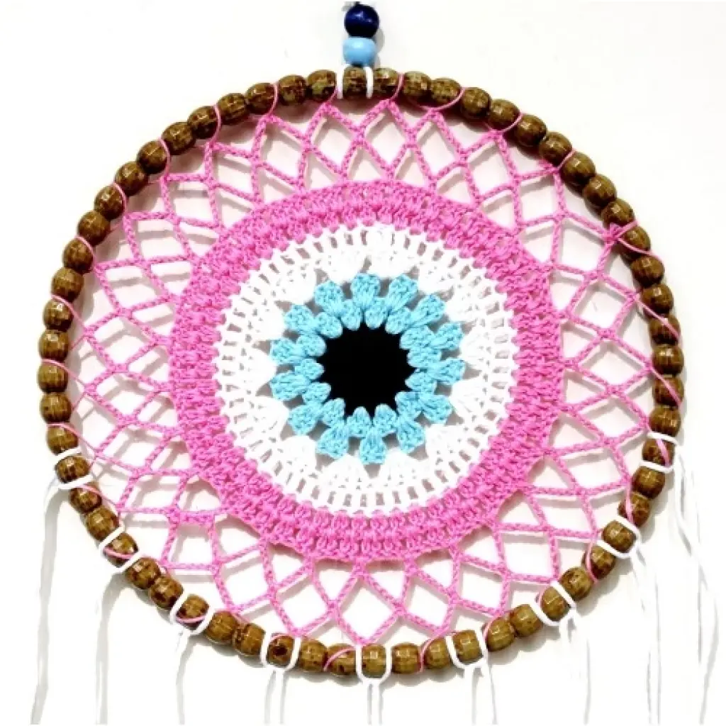 Nazar Boncuğu Motifli Düş Kapanı El Yapımı Pembe Duvar Süsü