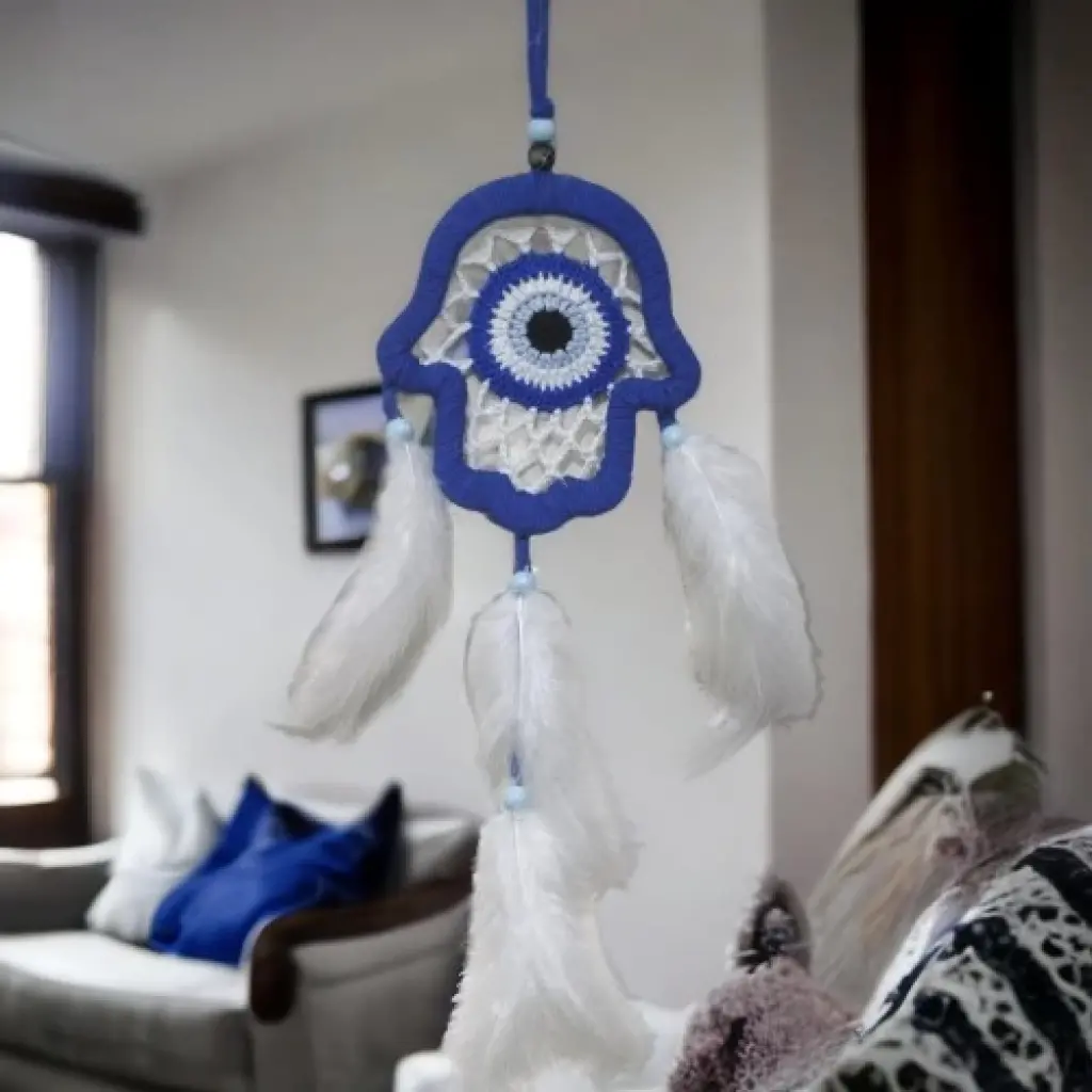 Nazar Boncuğu Motifli Mavi Fatma Ana Eli Duvar Süsü El İşçiliği Duvar Dekoru