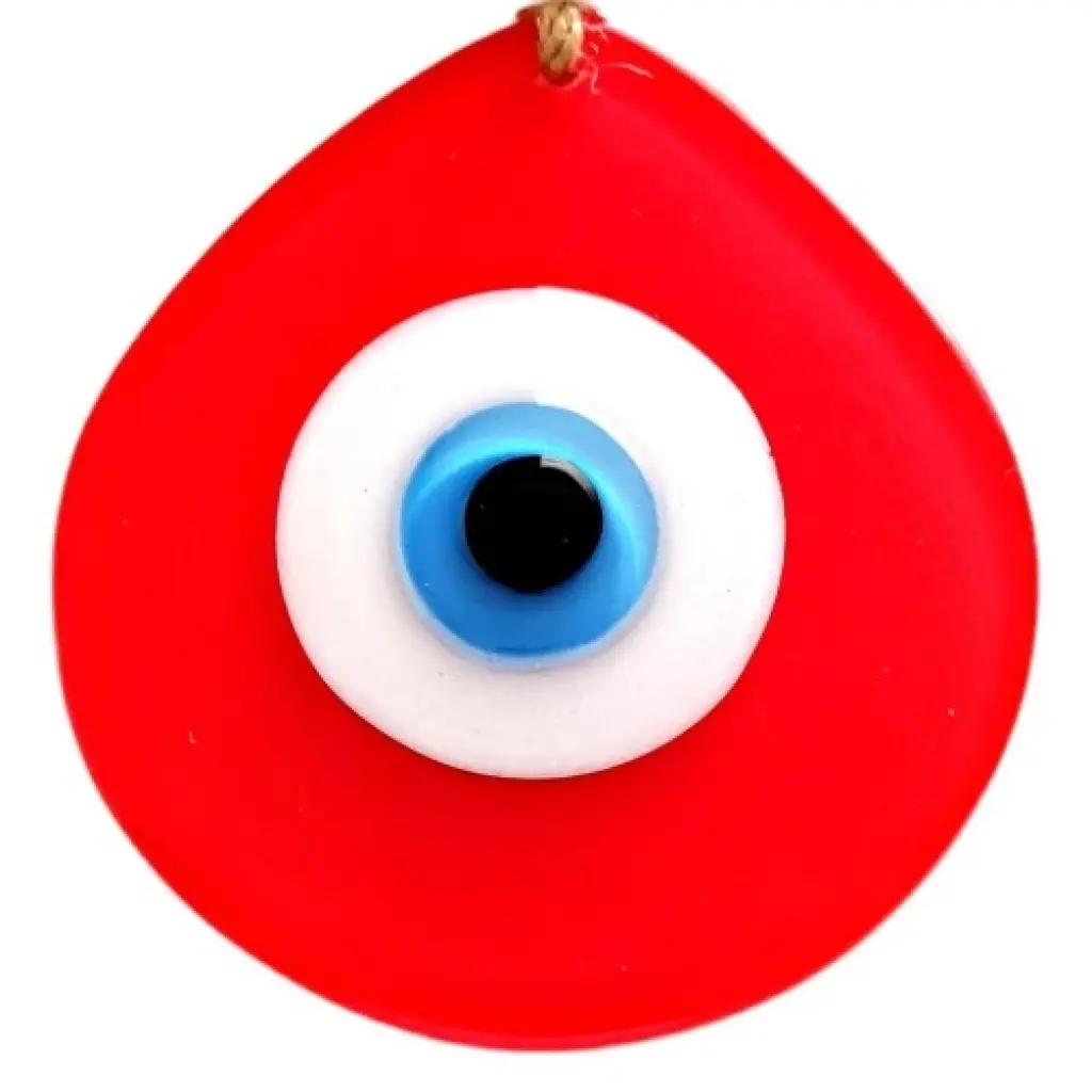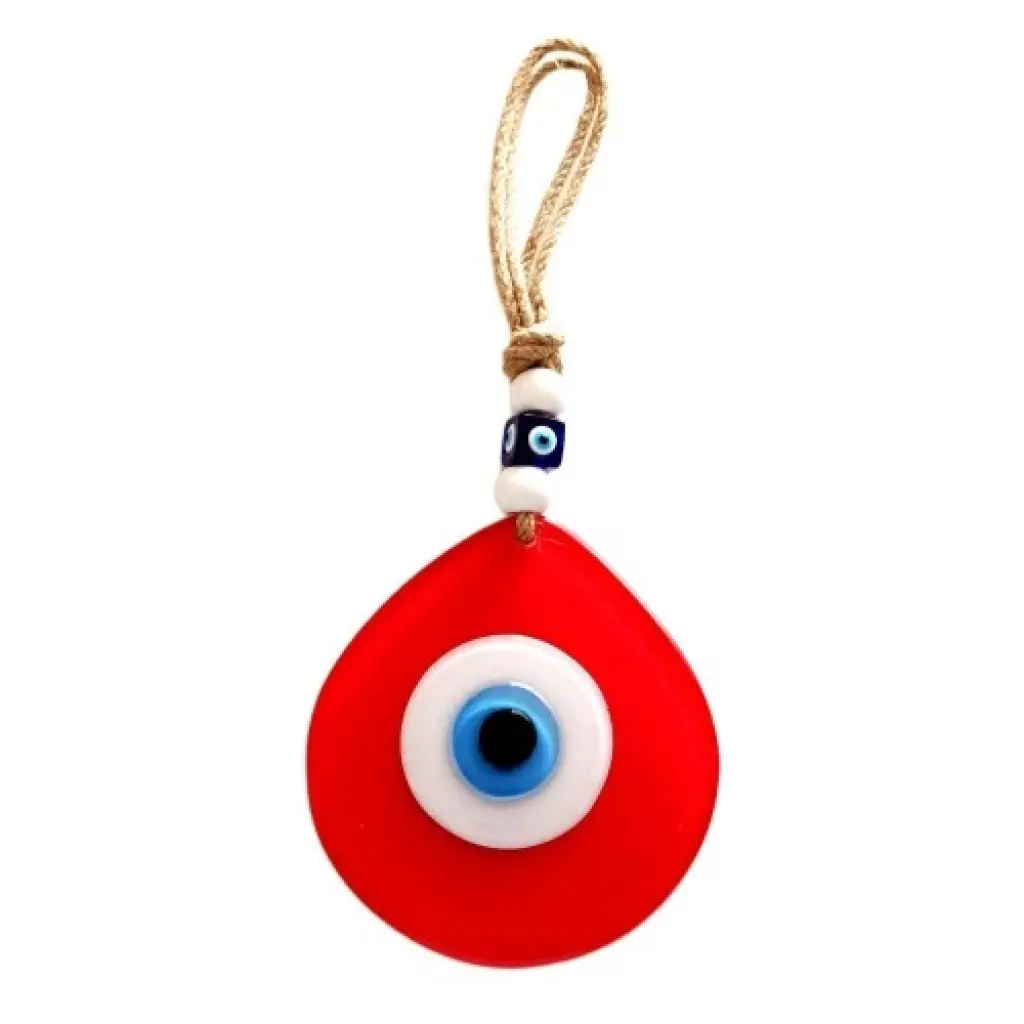 Nazar Boncuklu Damla Model Nar Çiçeği Rengi El Yapımı Cam Duvar Süsü