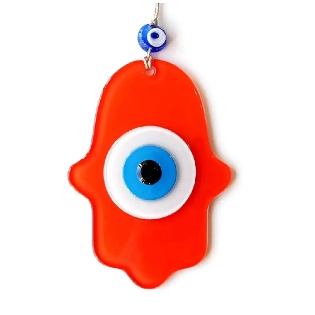 Nazar Boncuklu Turuncu Fatma Ana Bereket Eli Cam Duvar Süsü