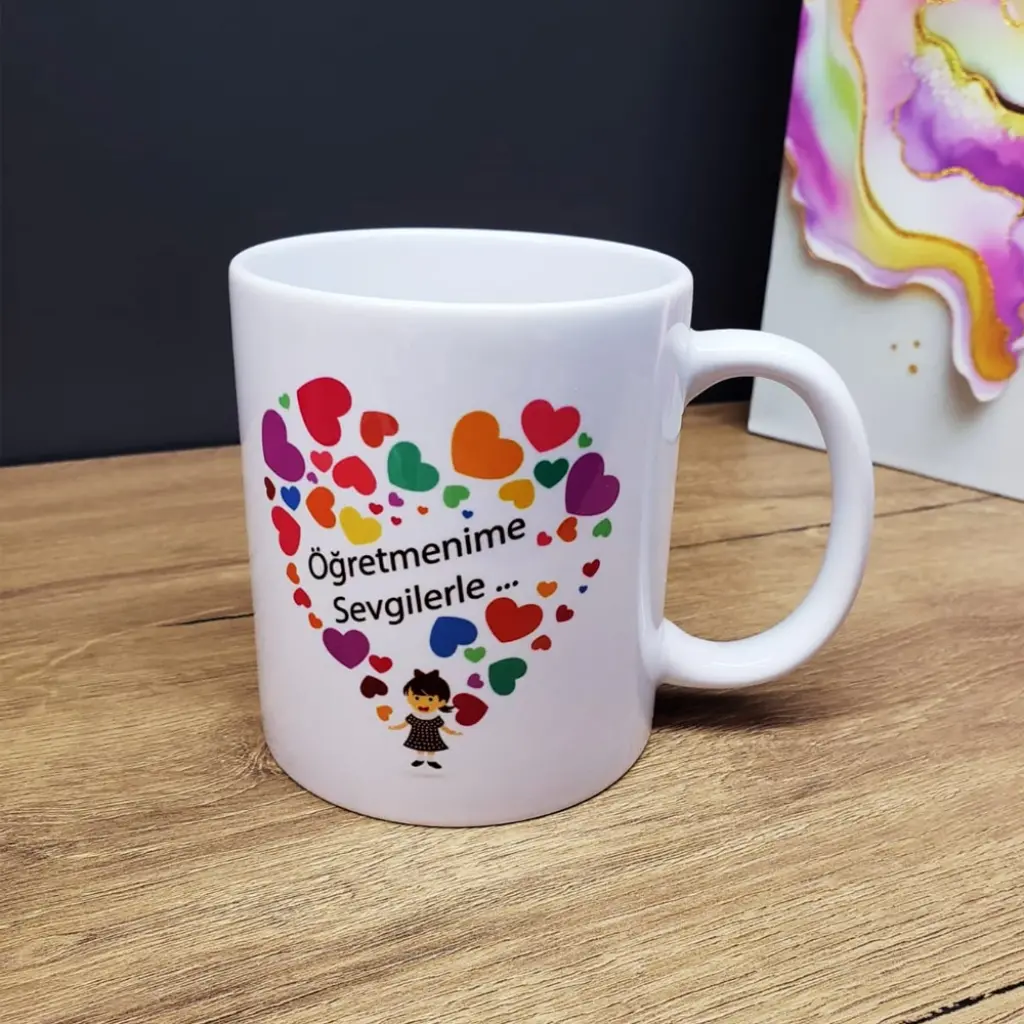 Baskılı Kupa Bardak Üzerinde Bulunan Öğretmenime Sevgililerle Baskısı Ile Öğretmeninize Eşşiz Bir Hediye.