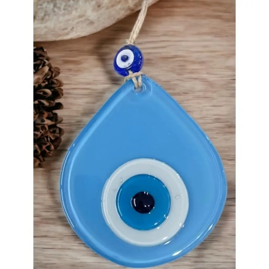 Mini mavi renk nazar boncuklu duvar süsümüz tamamen el işçiliği ile üretilmiştir. Tasarım harikası el yapımı nazar boncuklu duvar süsümüz 10 x 12 santimetre ölçülerindedir. Ürünümüz ip dahil 21 santimetre boyundadır.