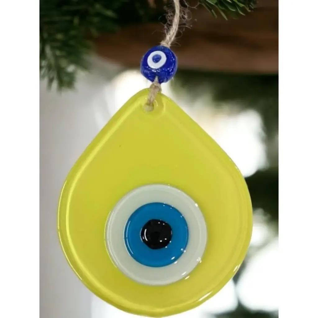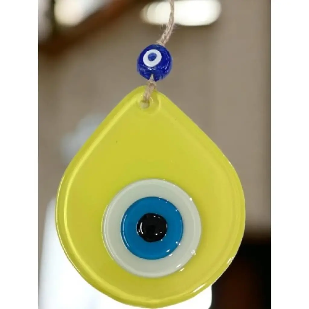 Mini sarı renk nazar boncuklu duvar süsümüz tamamen el işçiliği ile üretilmiştir. Tasarım harikası el yapımı nazar boncuklu duvar süsümüz 10 x 12 santimetre ölçülerindedir. Ürünümüz ip dahil 21 santimetre boyundadır.