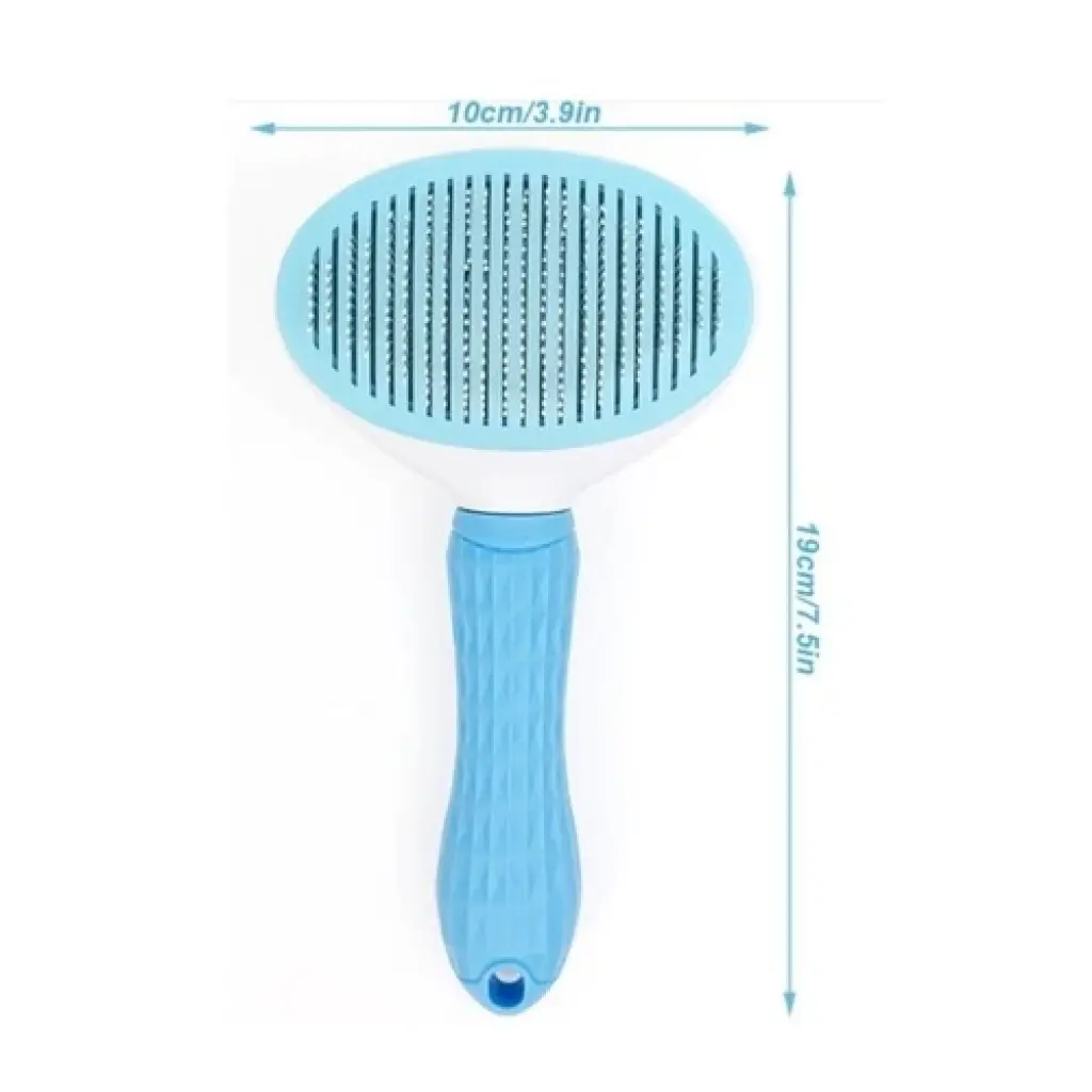 OTOMATİK TEMİZLENEN EVCİL HAYVAN TÜY TOPLAMA TARAĞI MAVİOtomatik temizlenen tuşlu kedi köpek tarama fırçası, köpeklerinizin istenmeyen ve fazla uzamış tüylerini taradıktan sonra rahat ve kolay bir biçimde toplar.Üstte bulunan tuşa bastığınızda telli kısımlarının çıktığı bir tarak olan bu alet, ev hayvanlarınızın karışan tüylerini kolaylıkla açabilmektedir.Bununla birlikte tellerin mekanizmanın içine geri girmesiyle, taranılan tüylerden dökülenler de kolayca çöpe atılabilmektedir.Kısa tüylü ya da tıraş olmuş köpeklerde, masaj ve rahatlama etkisi sağlamaktadır.Özellikle düzenli kullanımlarda kısa tüylerin parladığı ve dökülen tüy miktarı oranının düştüğü görülmüştür.Ürünün arka tarafınında bulunan düğmesine basıldığında taranırken tarakta toplanan tüylerin kolayca temizlenir.Tarama fırçası, aynı zamanda suyun altında da kullanılacağı için, rahatlıkla işlem yapılabilmektedir.Bu fırça, köpeklerinizin banyo keyiflerini de daha fazla arttırmaktadır.