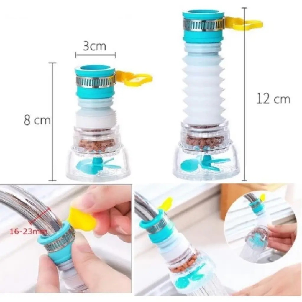 Musluk başlığı yumuşak hortum sayesinde uzatılabilir ve suyu hedeflenen yöne boşaltmak için 360 derece döndürülebilir. Böylece mutfak lavabolarının temizliği kolaylaşır ve temizlik alanı yayılır.Duş çıkışlı musluk püskürtme başlığı su akışının darbesini azaltır. Su sıçramasını önler ve %30 - %70 su tasarrufu sağlar.Musluk filtresi aktif mineral taşlar içerir. İnciler su temizliği için kullanılır ve bakterilere güçlü bir etkisi vardır. 16 – 23 mm çaplı musluğa uyar. Hortum kelepçesi ile kolayca sabitlenir, sıkı ve kaymaz. Hem sıcak hem de soğuk su kabul edilebilir.Renk: MAVİ ,YEŞİL,PEMBESTOK DURUMUNA GÖRE KARIŞIK RENK GÖNDERİLECEKTİR