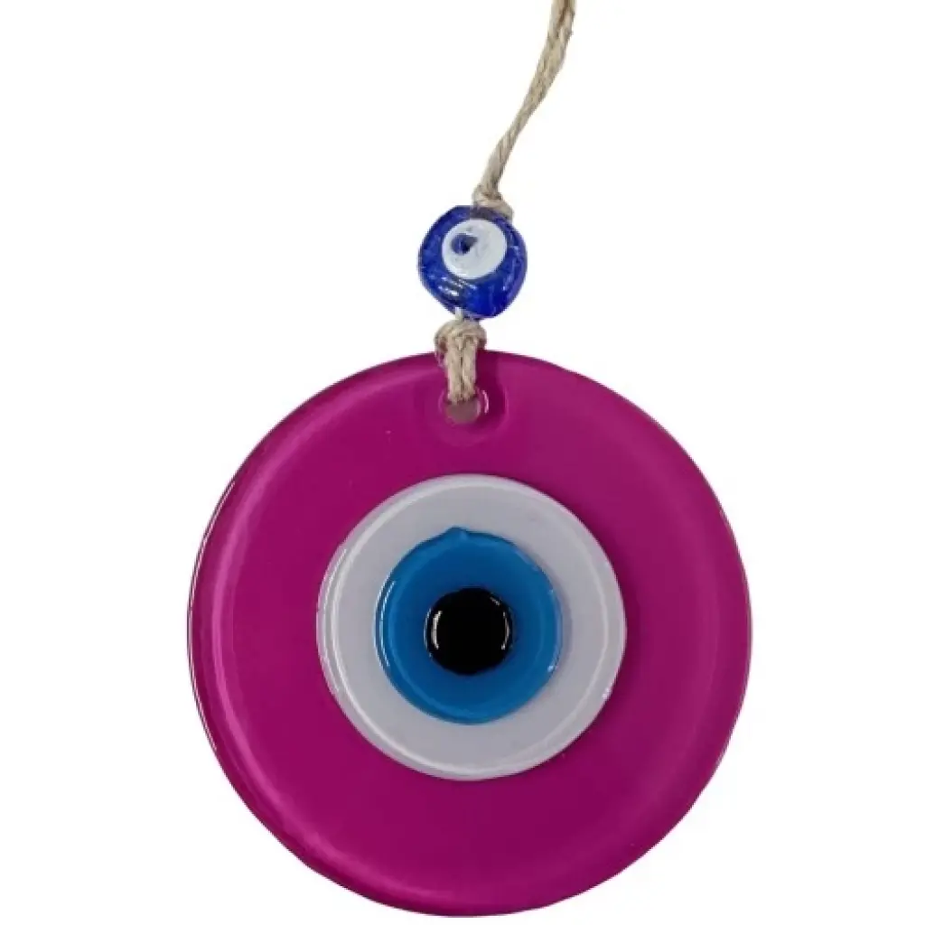 Mini boy pembe renk nazar boncuklu duvar süsümüz tamamen el işçiliği ile üretilmiştir. Tasarım harikası el yapımı nazar boncuklu duvar süsümüz 10 x 10 santimetre ölçülerindedir. Ürünümüz ip dahil 23 santimetre boyundadır.