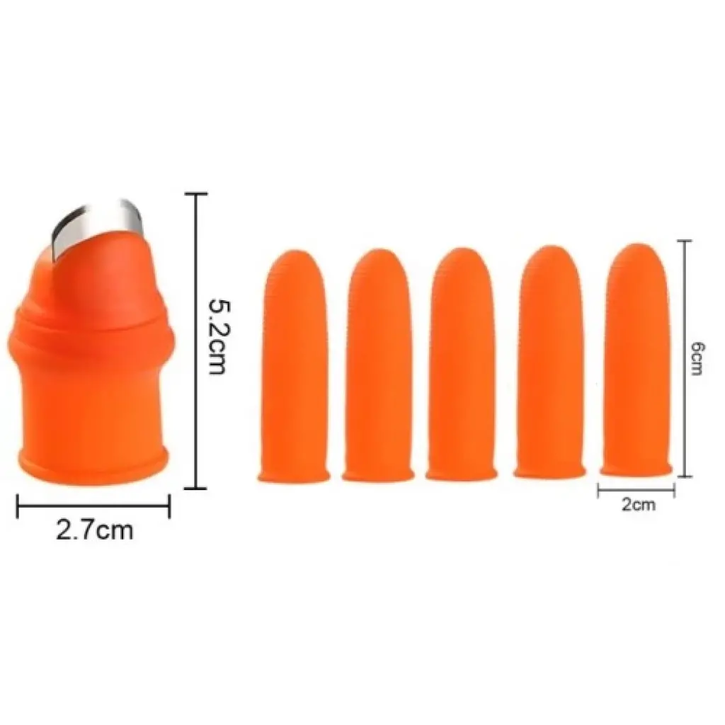 Baş parmak koruyucu soyucu ayıklayıcı kesme eldiveni bahçede, mutfakta sebze meyveleri soymak için kullanılır.Bahçe işlerinizde meyve sebze koparırken parmaklarınızı korur ve kesip koparmanıza yardımcı olurMutfakta sarımsak, sebze ve benzerlerini soymak için kullanılırGiyilebilir kısmı kaliteli silikon malzemeden üretilmiştirL Beden Set Boyutlar: 3.1*5.2*2.4cm Baş Parmak6cm * 2cm 5 Adet Orta Parmak