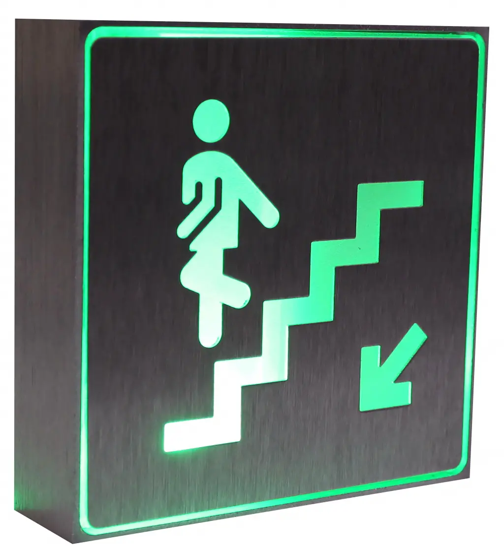 Yeşil ledli MERDİVENLİ AŞAĞI YÖN Elektrik kesintisinde 1 saat yanma süresi Şarj süresi:24 saat Tek Yüzlü Duvar monte Alüminyum gövde Watt:1W IP:30 110x110x 30mm Pil türü:NI-CD 1.2 V 350 mAh Giriş gerilimi:85-265V AC
