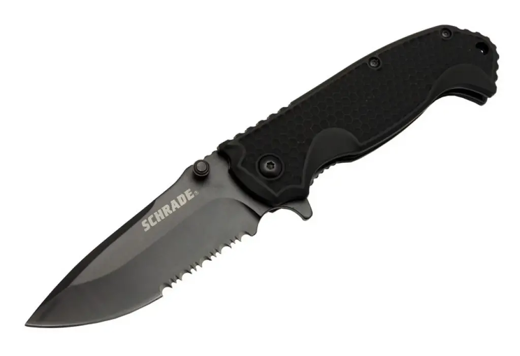 Schrade 5-1 Siyah Kamp Çakısı, hem işlevselliği hem de şık tasarımıyla öne çıkan bir üründür. Yarı otomatik açma mekanizması, testere detayı, dayanıklı malzemeleri ve ergonomik tasarımı sayesinde hem kamp hem de günlük yaşam için ideal bir seçenektir.