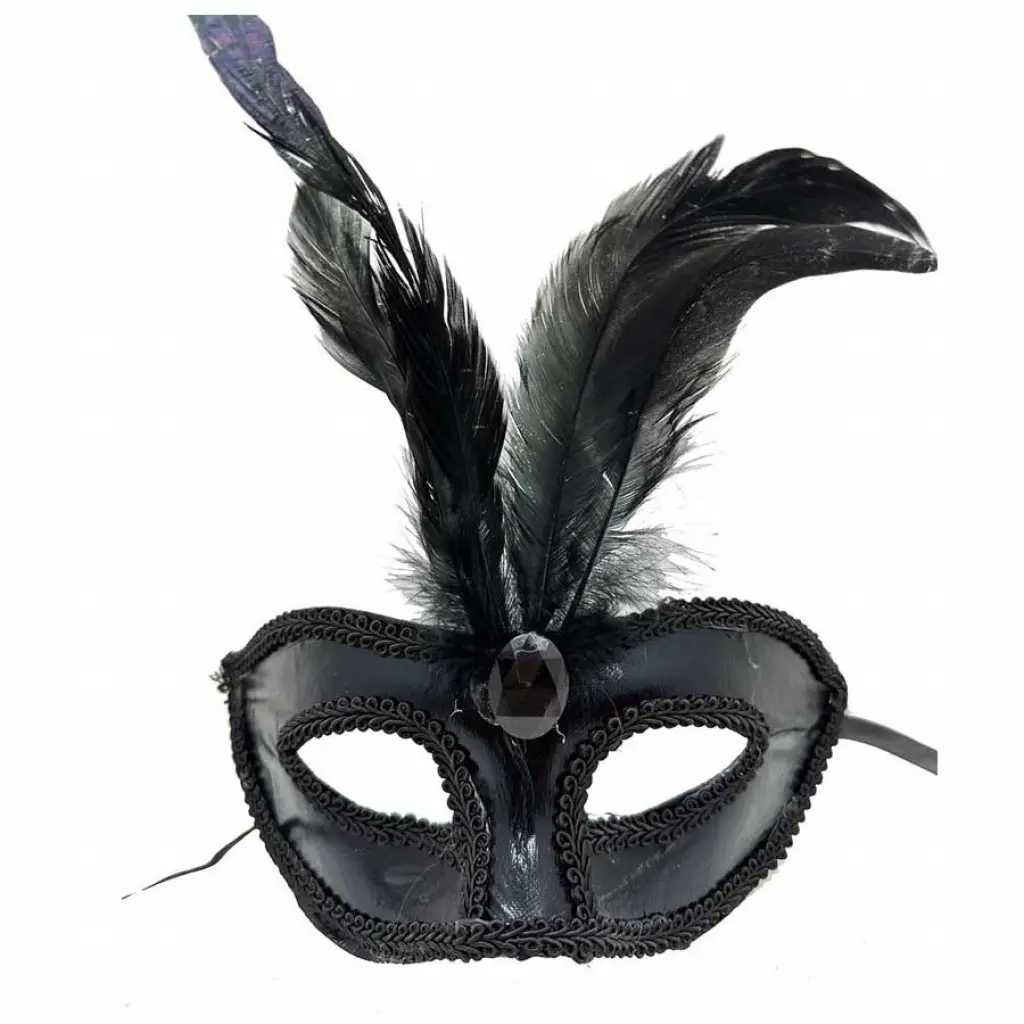 Siyah Rugan Kaplama Siyah Tüylü Parti Maskesi ile şık ve göz alıcı bir görünüm oluşturun ve özel günlerinizi unutulmaz kılın!