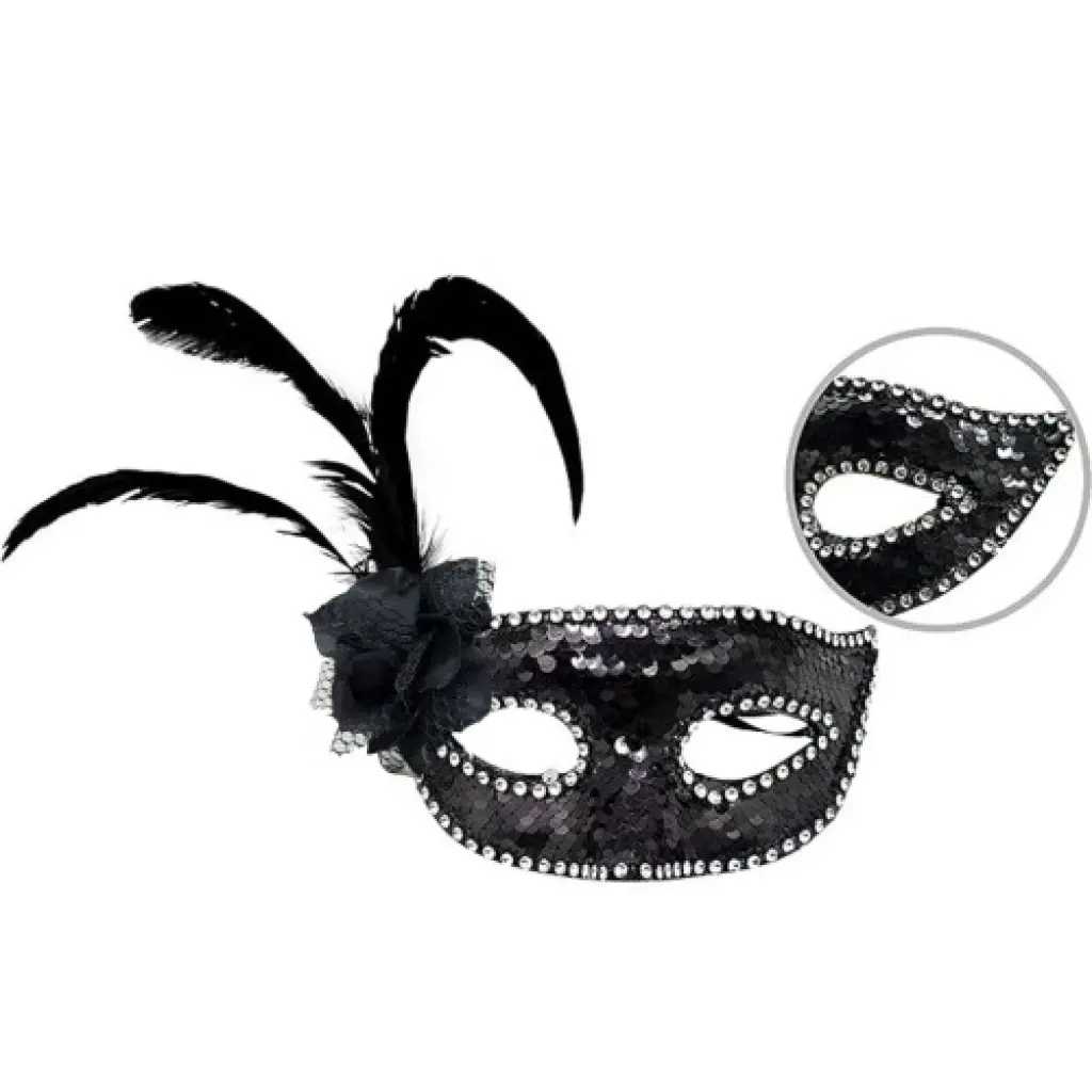SIYAH YANDAN TÜYLÜ GÜLLÜ TAŞLI PULLU MASKEÜrün ÖzellikleriŞık siyah renkte tasarlanmışYandan tüylü ve güllü detaylarla zarif bir görünümTaşlı ve pullu işlemelerle süslenmişBalolar, kostüm partileri ve özel etkinlikler için ideal20x22 cm ölçüsünde, rahat kullanım sağlarAnında dikkat çekici bir stil sağlarPAKET İÇERİĞİ1 adet Siyah Yandan Tüylü Güllü Taşlı Pullu Maske