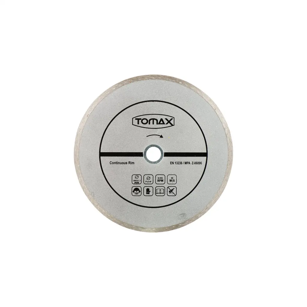 Tomax Sürekli Elmas Fayans Kesici Disk - 115x2,0x22, özellikle seramik, porselen ve fayans gibi sert ve dayanıklı malzemeleri kesmek için tasarlanmış özel bir kesici disktir. Diskin tamamı boyunca yer alan elmas parçacıkları sayesinde bu malzemeleri hızlı, temiz ve düzgün bir şekilde kesmenizi sağlar.