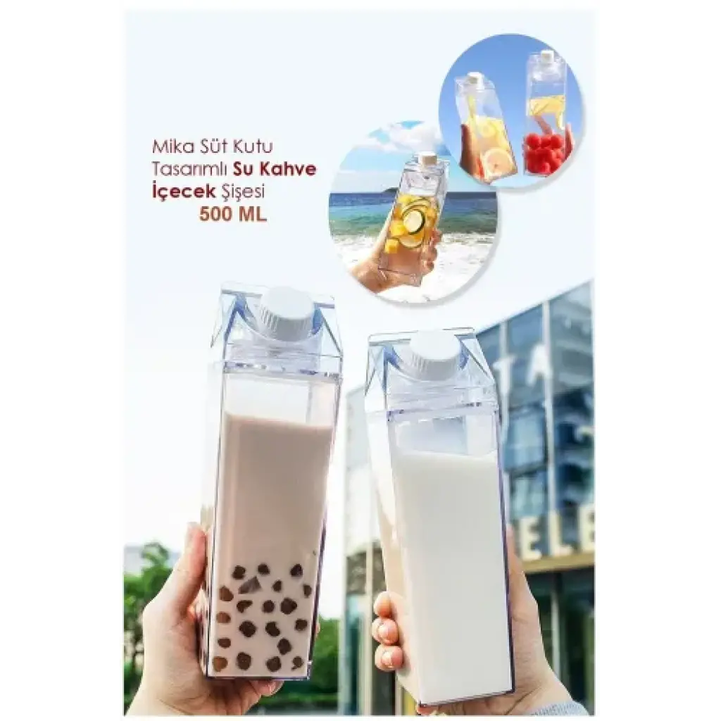 Ürün AçıklamasıSüt Kutusu Tasarımlı İçecek Şişesi ile içeceklerinizi stil sahibi bir şekilde taşıyın! Süt kutusu şeklindeki bu ilginç ve sevimli tasarım, klasik su şişelerine eğlenceli bir alternatif sunar. Şeffaf ve BPA içermeyen sağlıklı malzemeden üretilmiştir. Su, süt, meyve suyu veya diğer favori içeceklerinizi rahatlıkla doldurabilirsiniz. Sızdırmaz kapaklı yapısı sayesinde çantanızda güvenle taşıyabilirsiniz. Hem çocuklar hem de yetişkinler için okulda, ofiste, spor salonunda veya dışarıda kullanmak üzere ideal bir aksesuardır. Şık ve sıra dışı tasarımıyla dikkatleri üzerinize çekin.