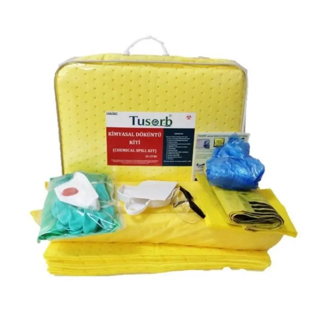 Kimyasal döküntüleri güvenli bir şekilde temizlemek ve bertaraf etmek için kullanılan ulusal ve uluslararası standartlara uygun geniş kapsamlı bir kittir.