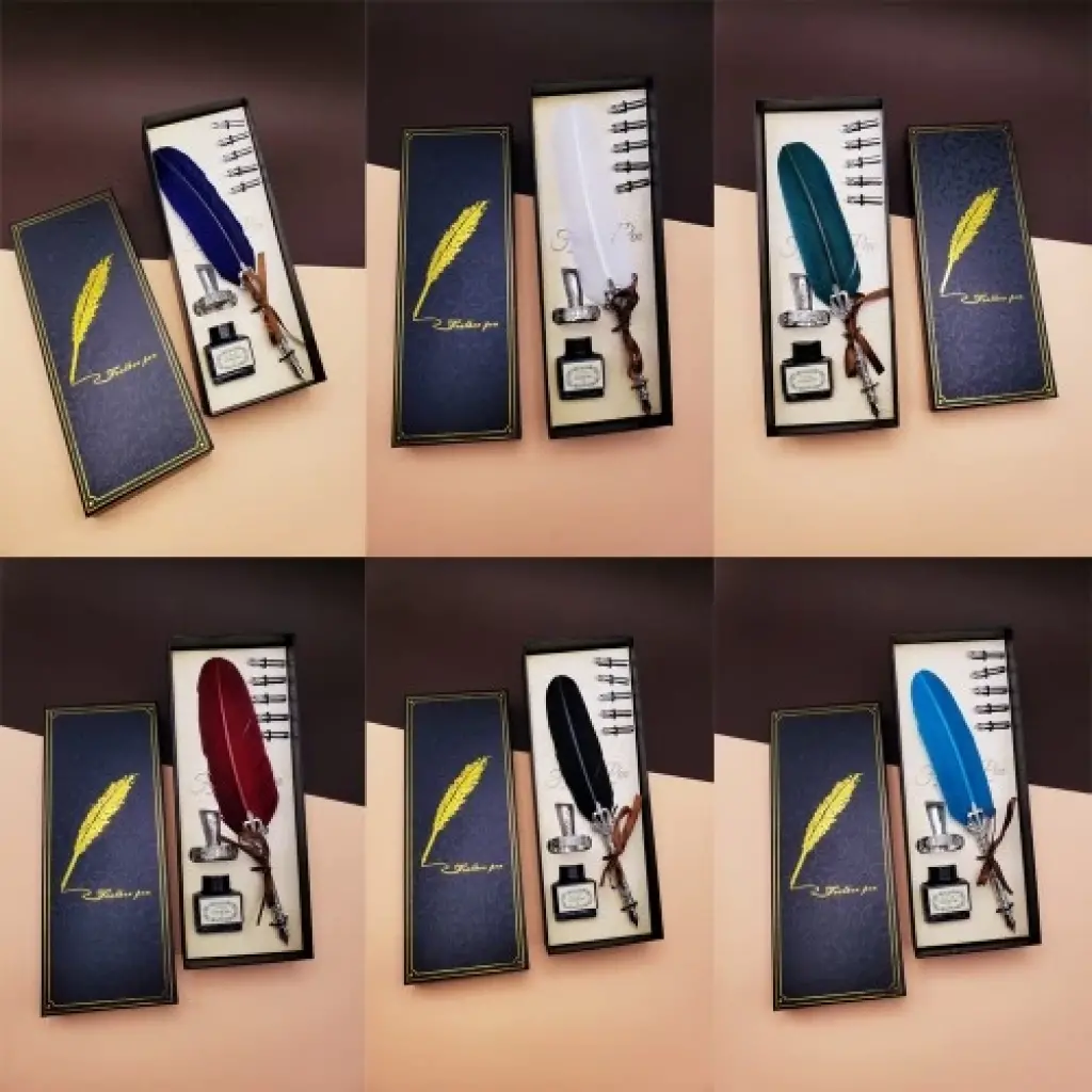 TÜYLÜ DİVİT KALEM SETİÖzel tasarımlı divit kalem seti sevdiklerinize çok şık tasarımlı hediye.Divit kalem seti özel tasarım olarak tasarlanmış olup özel günlerde en iyi hediye seçeneğidir.Divit kalem setini masaüstü dekor olarak kullanabilirsiniz.Divit kalem set şık bir tasarıma sahip olup dikkatleri üstüne çekecektir.Ürün Özellikleri:* Divit kalem ucu metal tasarımlıdır uç kısmı tüylüdür.* Yanında 5 farklı yazı başlığı vardır.* Set içerisinde divit kalem mürekkebi bulunur.* Karışık renklerde gönderilmektedir.* Divit kalem seti özel tasarımlı hediyelik kutusunda gönderilir. Paket İçeriği:* 1 adet tüylü kalem* 1 adet mürekkep* 5 adet divit uç