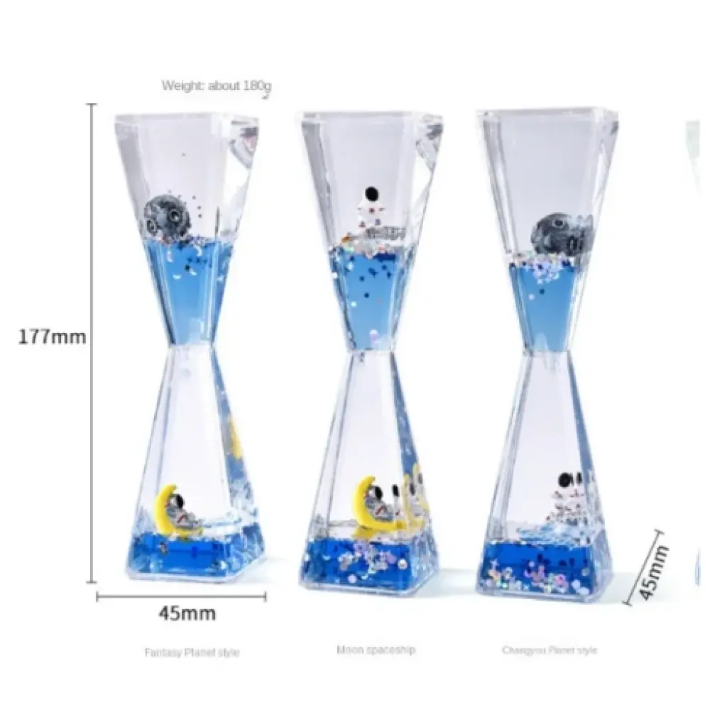 UZAY TEMALI DÖKÜLEN YAĞ KUM SAATİ1. Akrilik malzeme.2. Masaya, rafa veya masanın herhangi bir yerine yerleştirilebilen eğlenceli ve sevimli süslemeler için uygundur.3. Güzel görünüm, astronotlar nasıl yerleştirildikleri önemli değildir her halükarda yüzer duruma geçerler.4. Doğum günü, yıldönümü, düğün, babalar günü, anneler günü, ev dekorasyon için uygundur.Sıvı: mineral yağ + arıtılmış suBoyut: 17.4 x 5.5 x 4.8 cmAmbalaj listesi:1 adet sıvı sürüklenen uzay temalı aksesuar