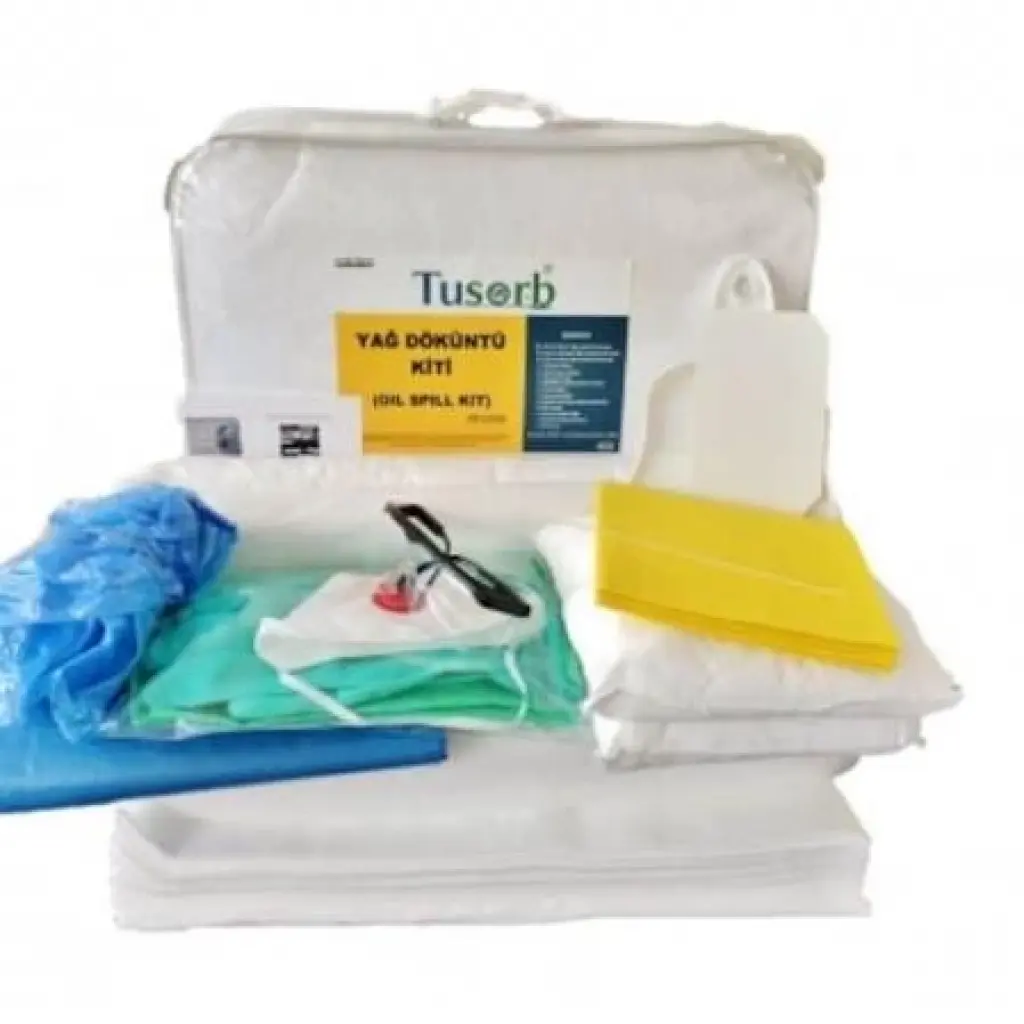 KİT: Yağ ve petrol emici absorban maddeler, kişisel koruyucu ekipmanlar ve atık torbaları ile yağ ve yağ bazlı maddeler ile petrol döküntü, sızıntı ve damlamalara karşı etkili temizlik sağlayan malzemelerin hepsini çanta içerinde bir arada bulundurur .Kulplu ve kolay taşınabilir olması özelliğiyle acil durumlarda anında müdahale edilebilecek şekilde tasarlanmıştır.