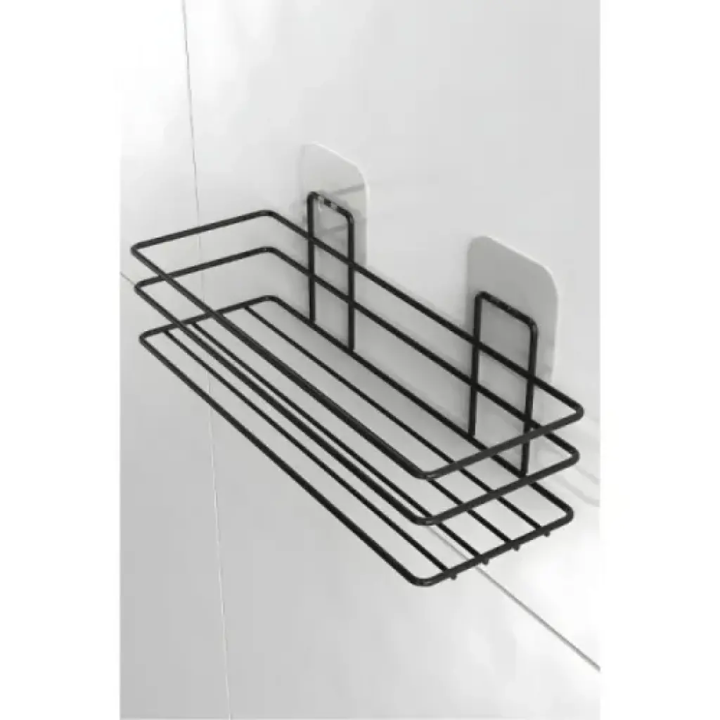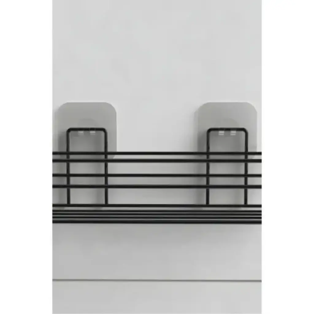 Yapışkanlı duş ve banyo rafı, banyoda delme işlemi yapmadan pratik bir şekilde düzen sağlamanıza yardımcı olur. Siyah kaplamalı paslanmaz metal malzemeden üretilmiş olup paslanmaya karşı dayanıklıdır ve uzun ömürlü kullanım sunar. Üç telli koruma kenarlığı sayesinde ürünleriniz düşmeden güvenle yerleştirilebilir. Açık taban tasarımı sayesinde su birikimini engeller ve hijyenik bir kullanım sunar. Şeffaf yapışkan panel ile banyonuza, duş alanınıza veya lavabo yanına kolayca monte edilir. Ortalama 3-5 kg taşıma kapasitesi ile şampuan, sabun, duş jeli ve benzeri ürünleri kolay erişilebilir biçimde organize edebilirsiniz. Modern görünümüyle banyo estetiğini bozmadan şık bir kullanım sunar. Aynı zamanda mutfakta veya diğer ıslak alanlarda da rahatlıkla kullanılabilir.