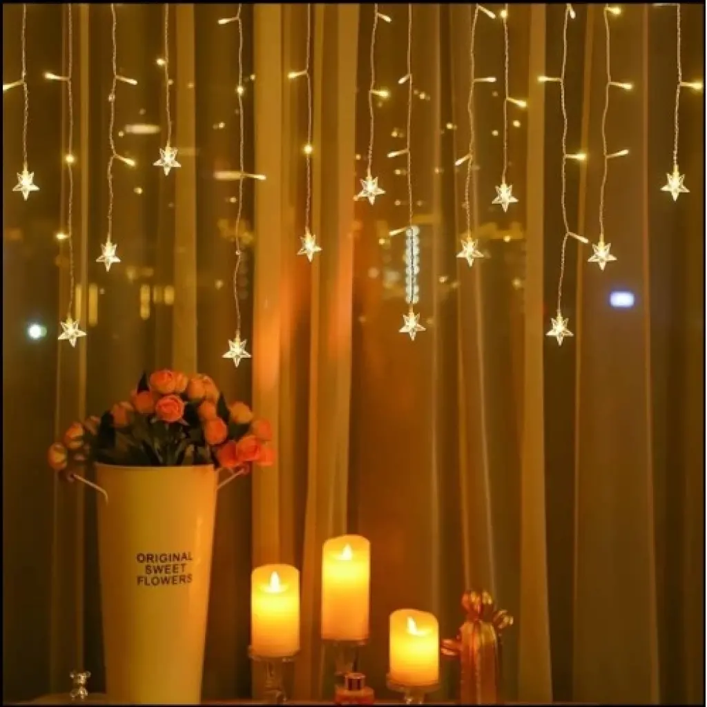 4 metre uzunluğunda, 96 ledli yıldız saçak lamba. Gün ışığı renginde, 19 saçaklı ve 40-60cm uzunluğunda. Yıldız boyutu 7cm.